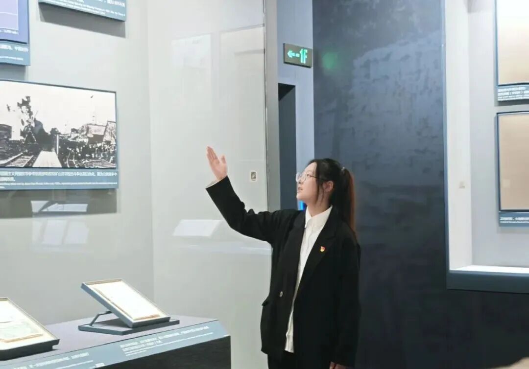 在“愿以此身长报国——纪念抗战胜利80周年”专题展览中,师生跟随“红研青锋”浙理硕博宣讲团成员吴妤璇的实景式宣讲,以微观叙事为脉络,通过362件珍贵展品与创新展陈,共同缅怀了抗战英烈的生命轨迹,进一步感悟了伟大抗战精神深刻内涵与时代价值。