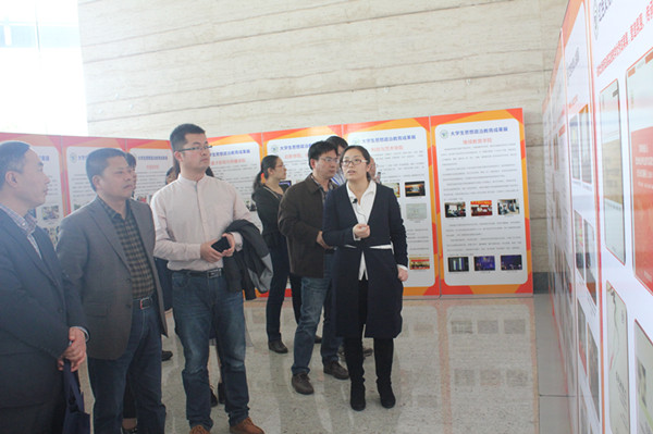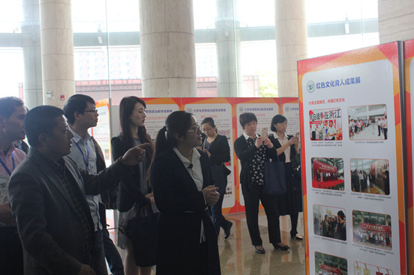 4月5日下午,教育部思政司举办的“学习贯彻全国高校宣传思想工作会议精神”专题培训班学员四十多人,主要是各省区市教育工委领导、委属重点高校和部分地方高校学工部长等,前来我校参观大学生思想政治教育成果展,我院以“红色文化研究与实践育人成果”为主题参展。展览活动在我校大剧院举行。