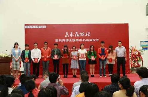 2015年10月10日, 我院14级研究生应璐婷、王学玮同学在浙江理工大学团委与京东集团校企合作创新项目“京东派▪共青团全媒体中心”的落成仪式中荣获2015年优秀微记者称号。