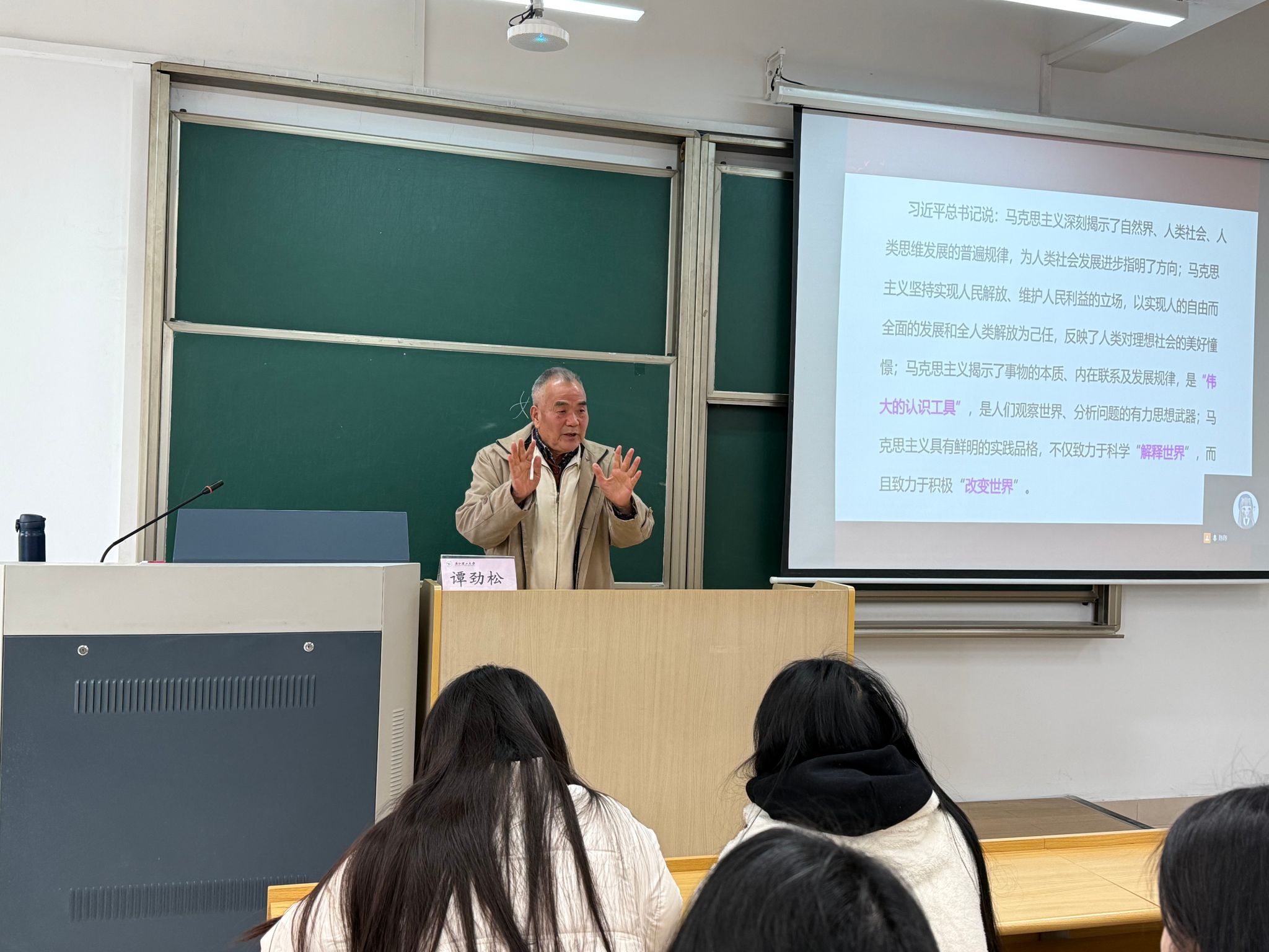 在探讨怎样学习马克思主义时,谭劲松教授给出了具体且实用的指导。他从读原著学经典、坚定理想信念、提升本领和素质三个方面入手,指出学习马克思主义要做到“真学、真懂、真信、真用”。他鼓励研究生们静下心来研读马克思主义经典著作,从源头上汲取智慧和力量;要坚定对马克思主义的信仰,将理想信念内化于心、外化于行;同时,要不断提升自身的本领和素质,以更好地适应时代发展的需求。最后,他鼓励研究生们积极投身实践,在实践中践行马克思主义信仰。