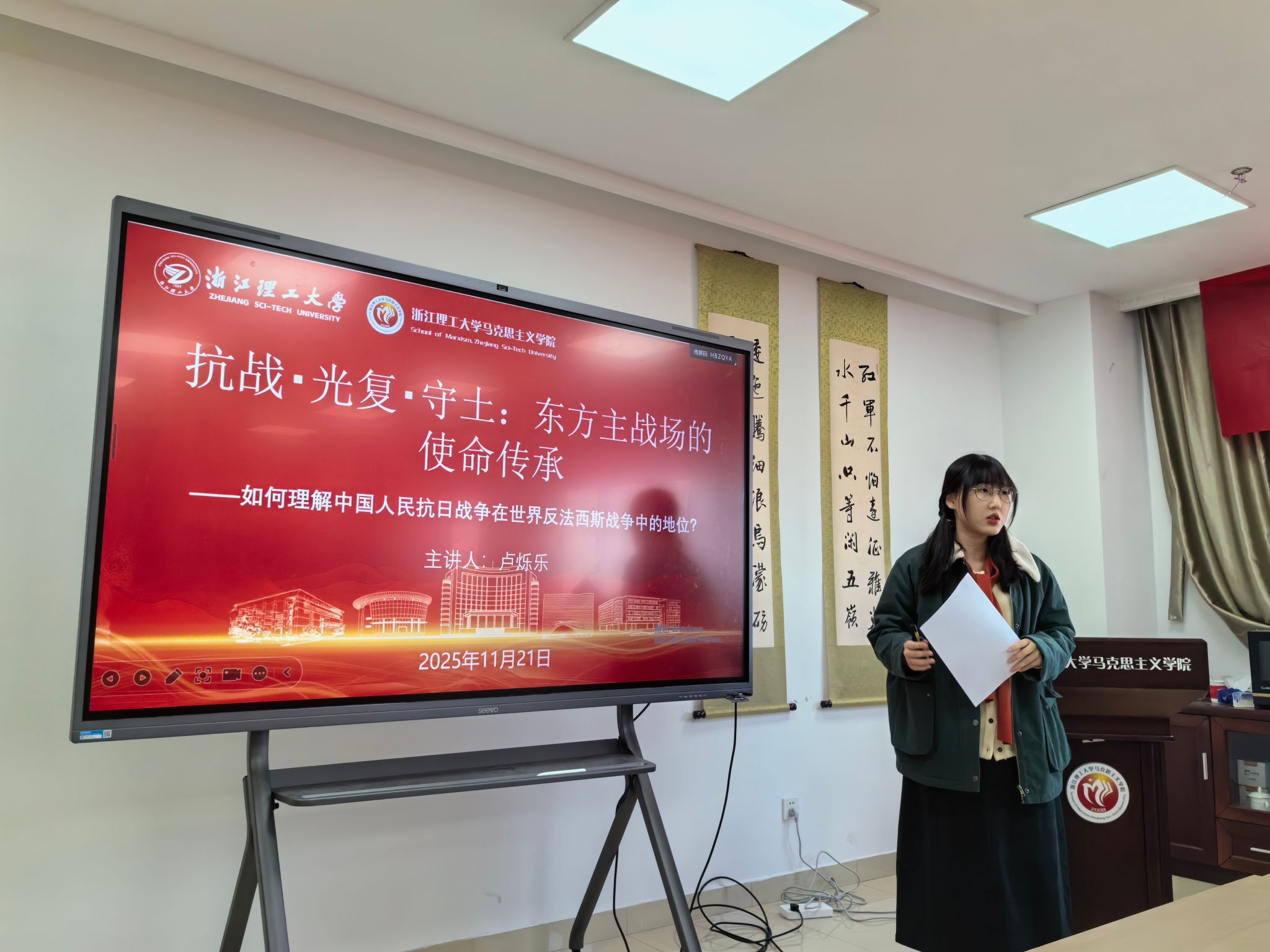 2025年11月21日上午,浙江理工大学马克思主义学院《中国近现代史纲要》教研部在25-1310会议室成功召开了2025-2026学年第一学期集体备课会。本次会议以“九三阅兵、台湾光复纪念日融入抗日战争专题教学与实践”为主题,由马克思主义学院副院长、中国近现代史纲要教研室主任王艳娟老师主持,教研部全体任课教师与会,进行了深入的理论研讨和教学交流。