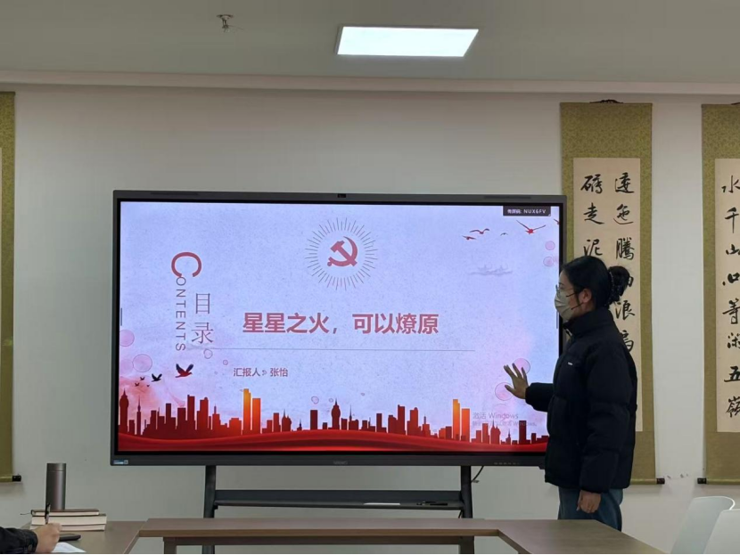 张怡同学分享了《星星之火,可以燎原》,她指出在革命低谷、悲观情绪蔓延时,该文立足国情批判错误思想,指明农村斗争与红色政权的重要方向,为红军注入强大精神力量,为中国共产党和中国革命指明了方向和道路。她强调,该文告诉我们新生事物刚开始的时候都是弱小的,只要坚持真理,不畏强暴,新生事物就会发扬壮大。即使星星之火,也能呈燎原之势!
