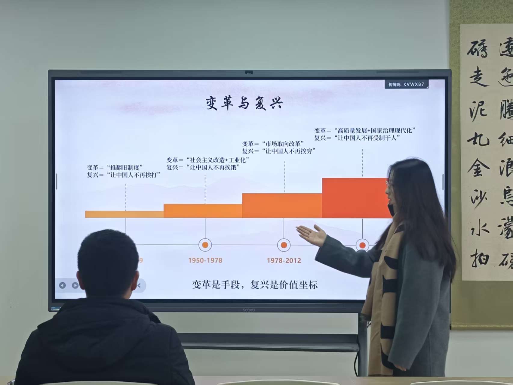 陈焱同学围绕《中国共产党简史》,呈现党在不同历史阶段的变革实践,始终以马克思主义为指导,以民族复兴为价值坐标。百年党史的变革实践,始终贯穿着“实事求是”的思想精髓与“以人民为中心”的根本立场。从毛泽东思想确立为党的指导思想,到中国特色社会主义理论体系的形成与发展,再到习近平新时代中国特色社会主义思想的创立,党始终立足中国实际,回应时代课题,在实践中坚持和发展马克思主义,让理论之树常青。