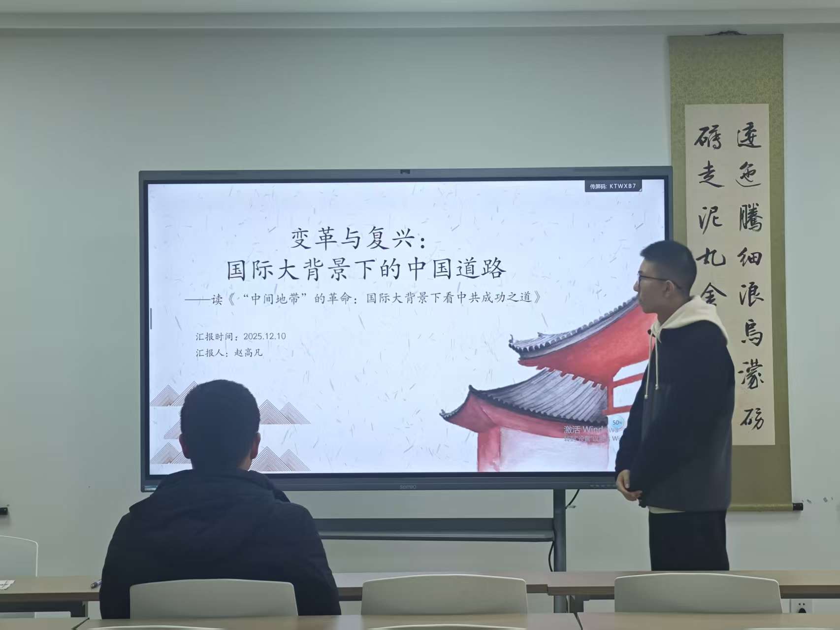 12月10日,我院于25-1310成功举办了第一百二十六期青马学术论坛,黄超老师出席并担任点评教师。本次青马学术论坛由科研中心吴德芬主持,我院2024级研究生赵高凡、樊怡婷、詹思思、杨晓宇、吴德芬以及2025级研究生周克言、周和兴、陈焱、虞捐艺参加,并分别作主题为“变革与复兴”的读书分享。