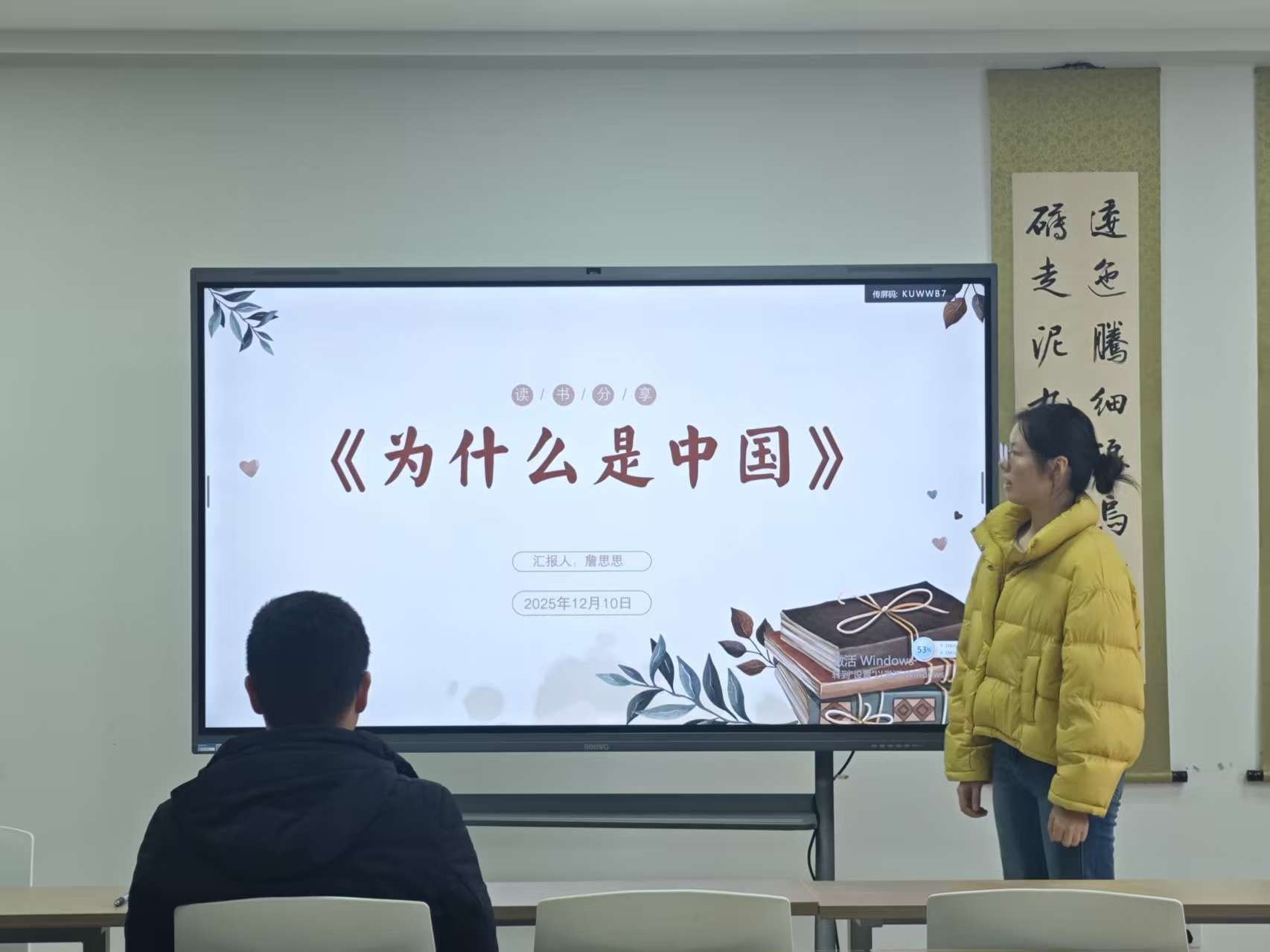 詹思思同学分享《为什么是中国》一书,谈到中国共产党人正是凭借钢铁般的意志、高瞻远瞩的智慧与矢志奋进的决心,以鲜血和牺牲为代价,为苦难深重的中国迎来了近代以来的第一缕曙光,让深陷困境的人民看到了生活的希望。阅读时她心生感慨,深切体会到历史的伟大与残酷。伟大在于,浴血奋战的岁月向世界证明中国早已摆脱“东亚病夫”之名,这份胜利至今滋养着我们;残酷在于,敌我悬殊之下,每位战士皆以不死不休的气魄,为渺茫的希望拼尽所有。