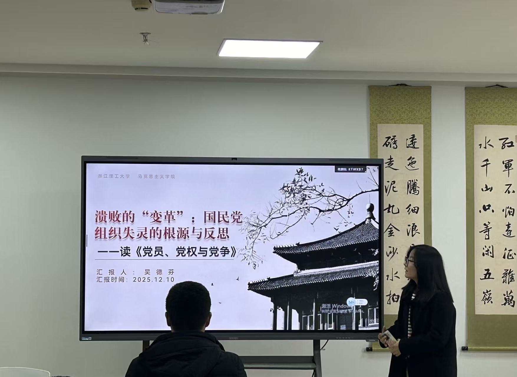 吴德芬同学分享了王奇生先生的《党员、党权与党争》,该书考察了国民党的组织形态,从国民党内部探寻其制度结构与运作机制,对国民党内部派系冲突、党务与党权在地方的运作、党与政和军的关系等做了细致的讨论。国民党最终未能建立一个具有严密渗透性和强大内聚力的政党组织体系,这也为当代政党在推动社会变革、实现民族复兴的进程中提供了宝贵的历史镜鉴。