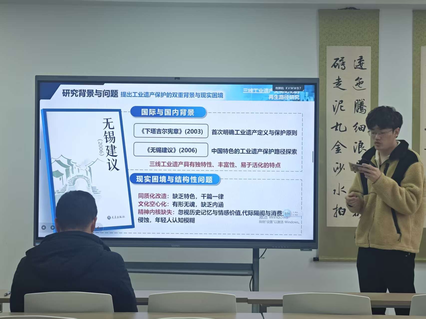 周和兴同学分享丁小珊老师《三线工业遗产文化记忆的再生路径研究》一文,文章以双理论为支撑,探索三线工业遗产活化路径。三线工业遗产作为特殊历史遗存,承载着“艰苦创业、无私奉献”的三线精神,这正是集体主义、爱国主义精神在社会主义建设时期的具象化表达。文章强调精神内核提取与场所精神营造的结合,契合马克思主义“精神生产离不开物质载体”的基本观点,揭示了红色文化传承需要“有血有肉”的实践逻辑。