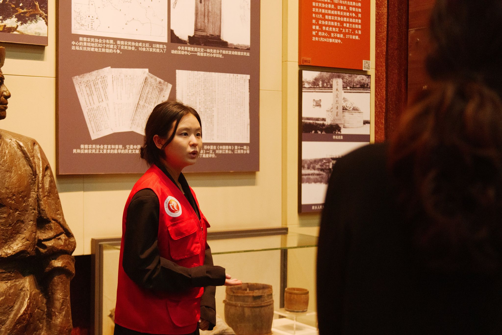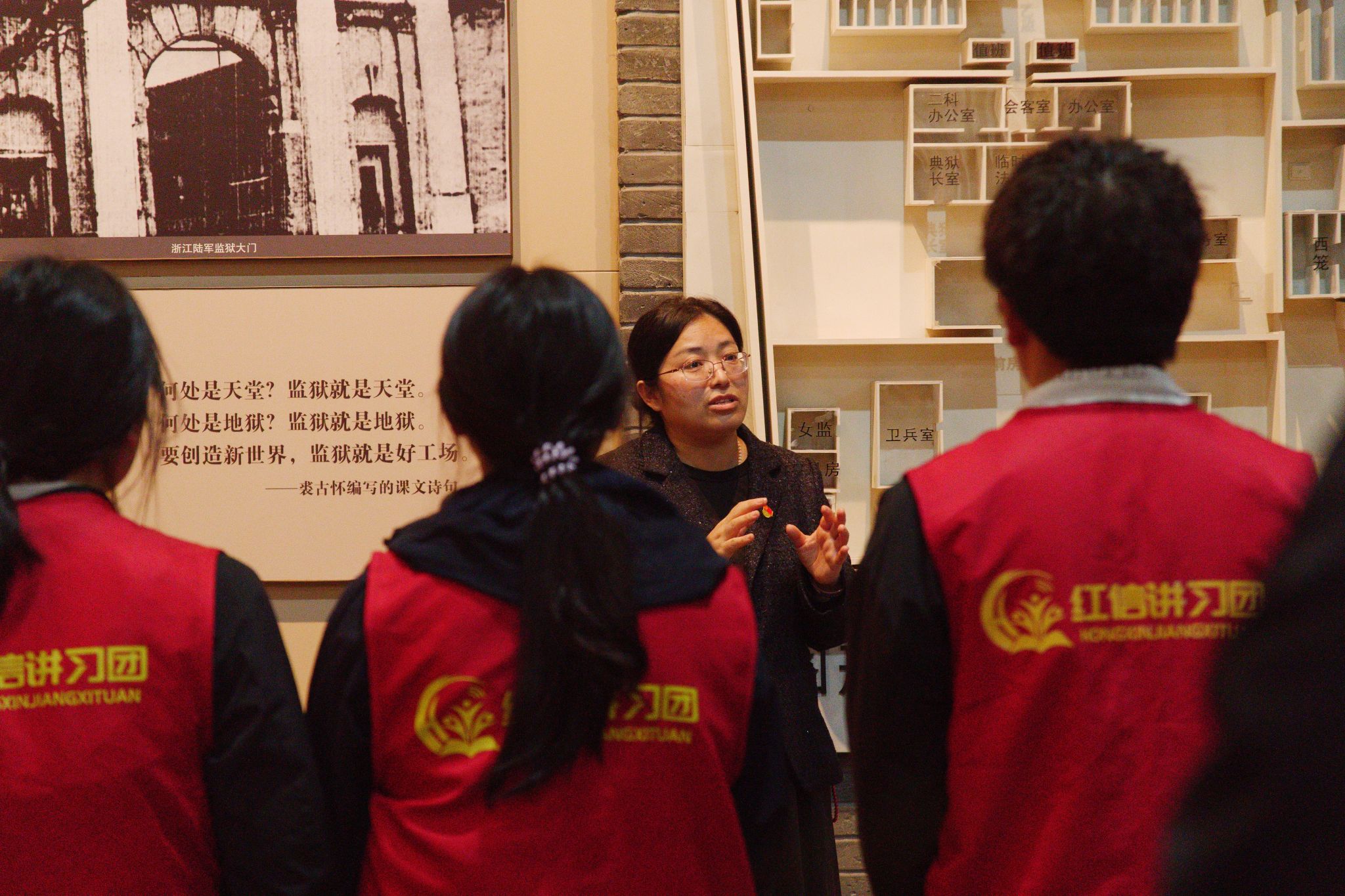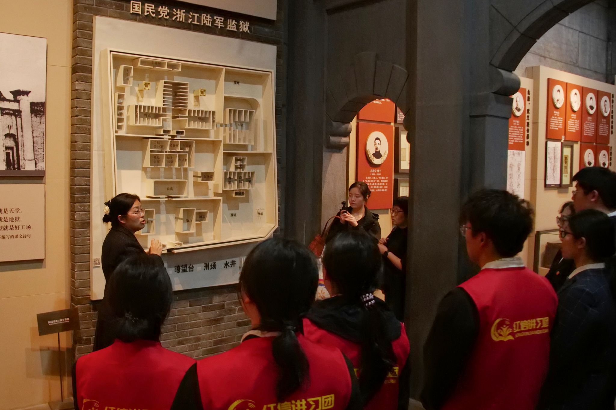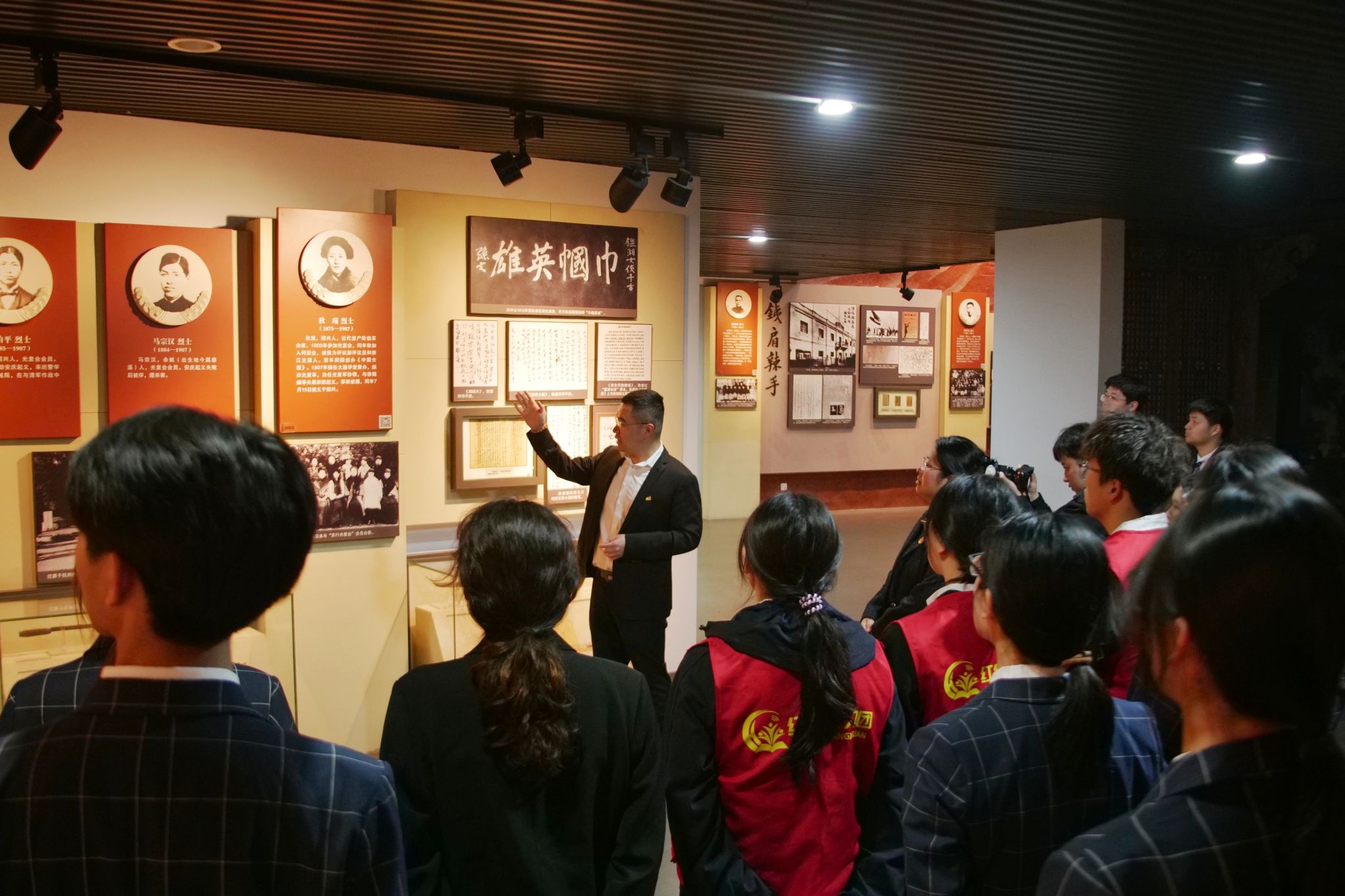 仪式结束后,师生们有序瞻仰革命烈士纪念碑,随后走进浙江省革命烈士纪念馆开展沉浸式研学。浙江理工大学红信讲习团的师生主动化身“红色讲解员”,结合馆内千余幅历史图片、400多件珍贵文物,生动讲述秋瑾、俞秀松、张秋人等革命先烈的英勇事迹,让冰冷的文物变得鲜活可感,让一段段红色历史直抵人心,引导跨学段学子在聆听中感悟英烈精神,在感悟中传承红色力量。
